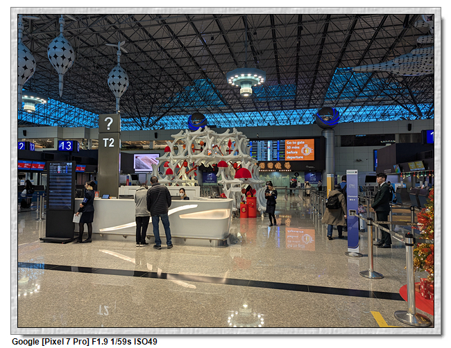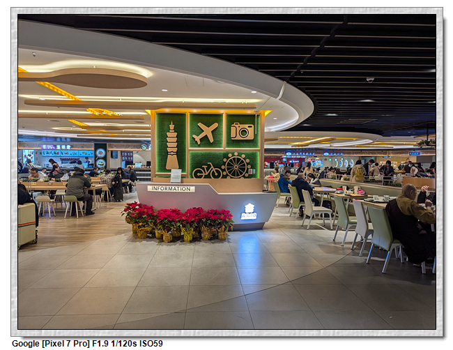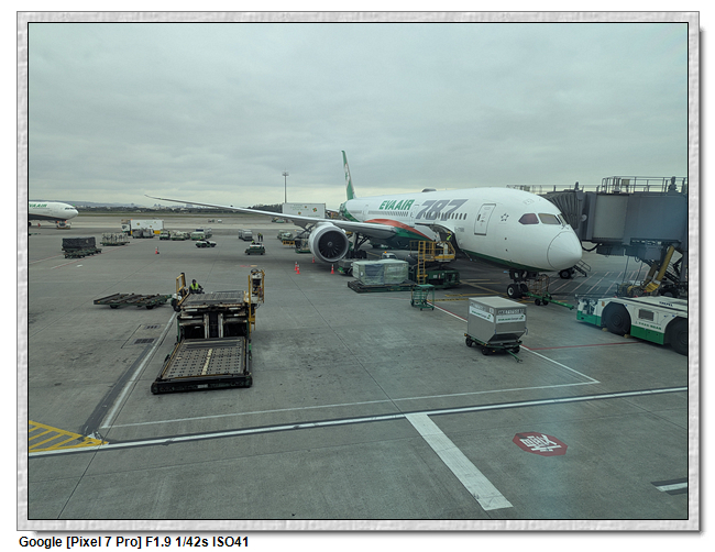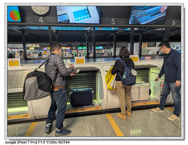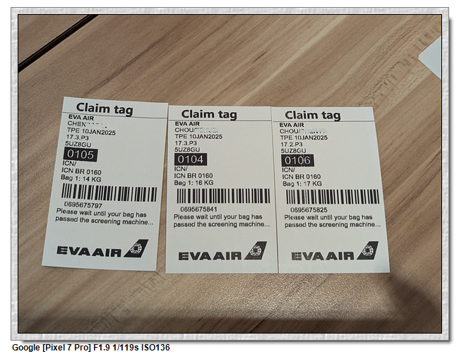 抵達機場後,找到長榮的櫃台,長榮已經啟用的自助掛行李的機器,show給服務人員已在網路報到的電子機票後,我們首次在桃園機場使用自助掛行李機,使用上不難,流程跟在歐洲使用上差不多,很快的我們就完成行李托運的流程。開始找午餐吃(我們還沒吃午餐)。