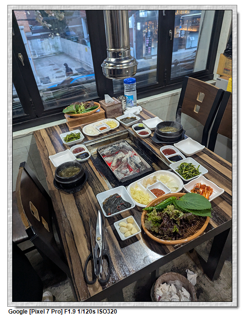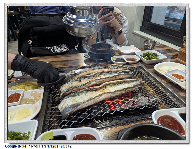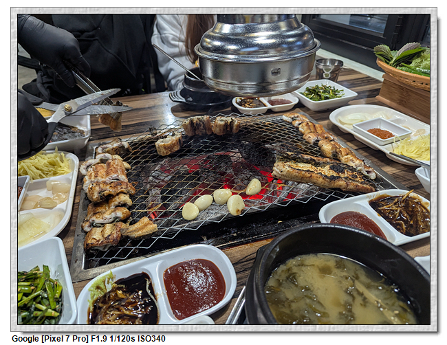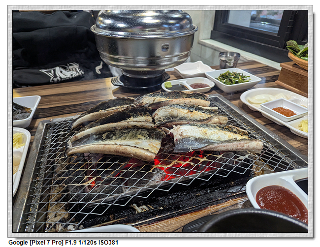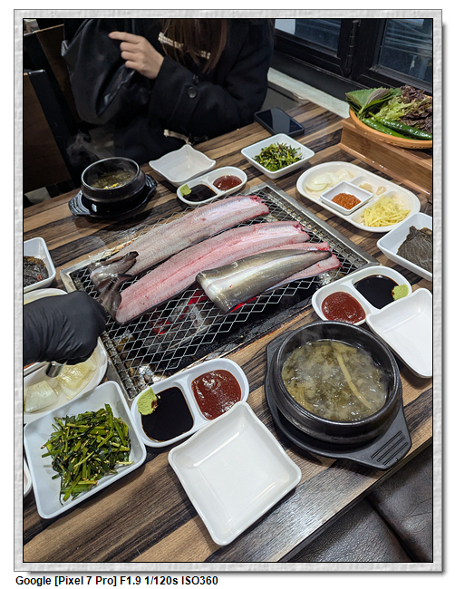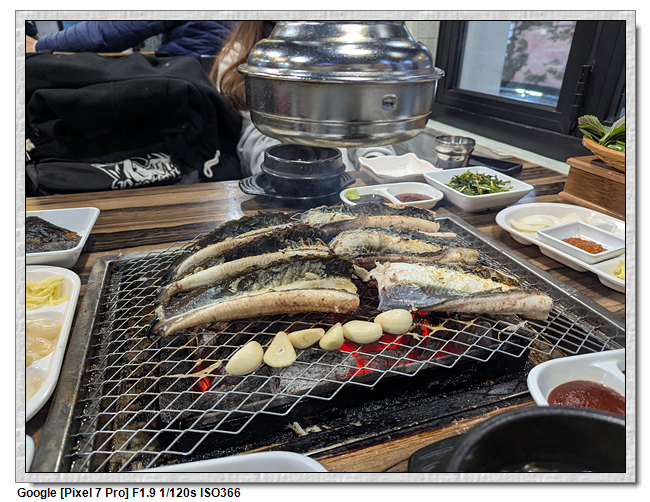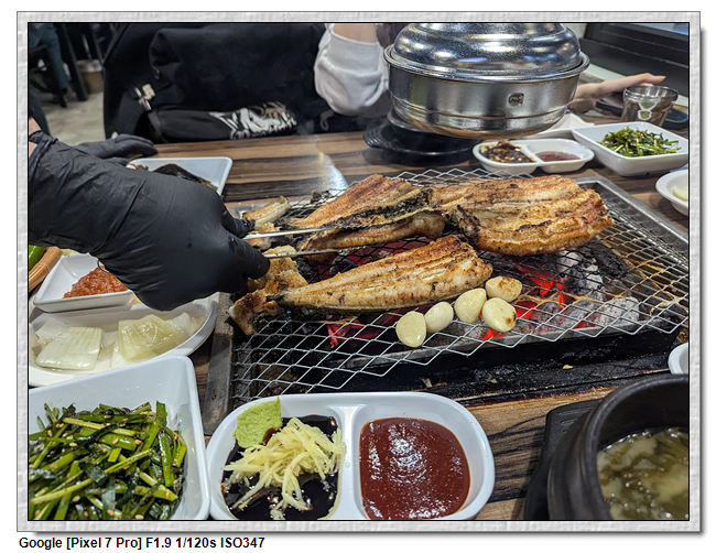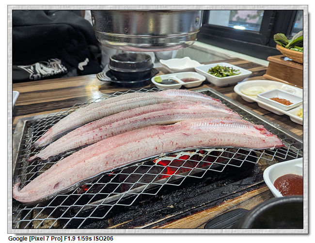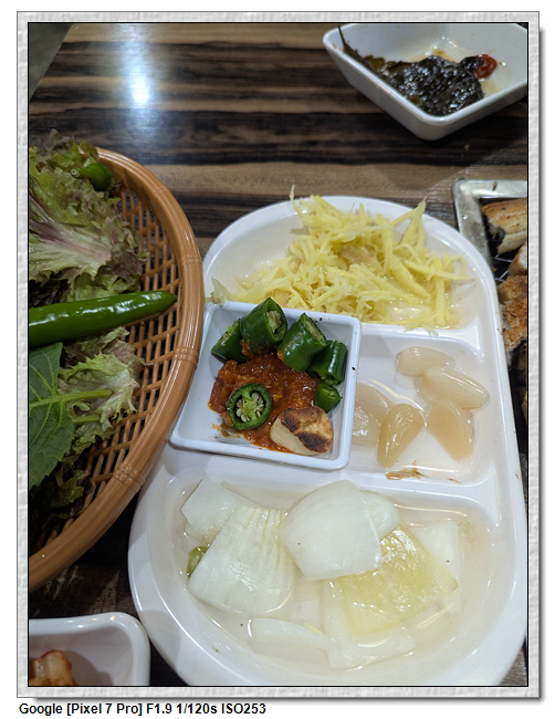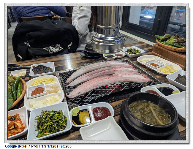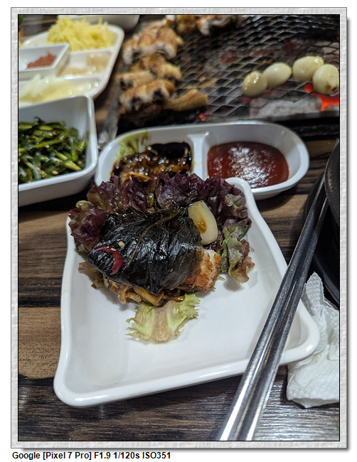 第一次吃烤鰻魚,以往都是吃那種日式鰻魚飯的鰻魚,偏油但很好吃,這次的烤鰻魚沒那麼油,也沒甚麼魚刺,加上各式樣的配菜,還真的好吃,我們很快地就把配菜吃完,店員很快地就自己幫忙補上一份配菜。
