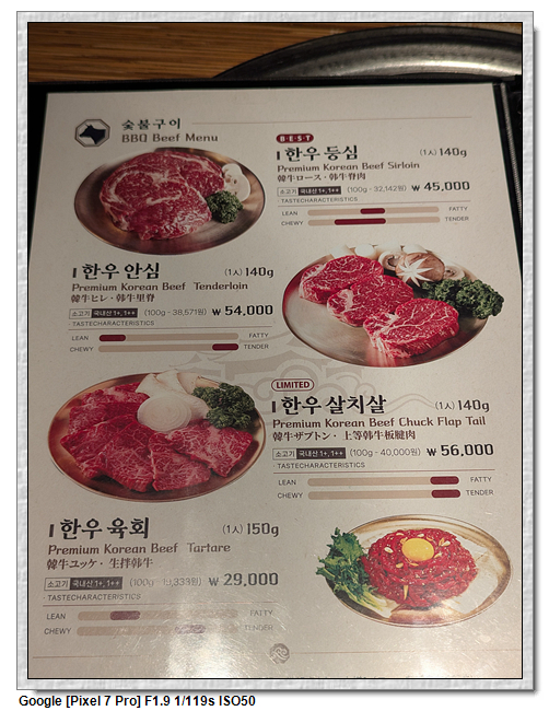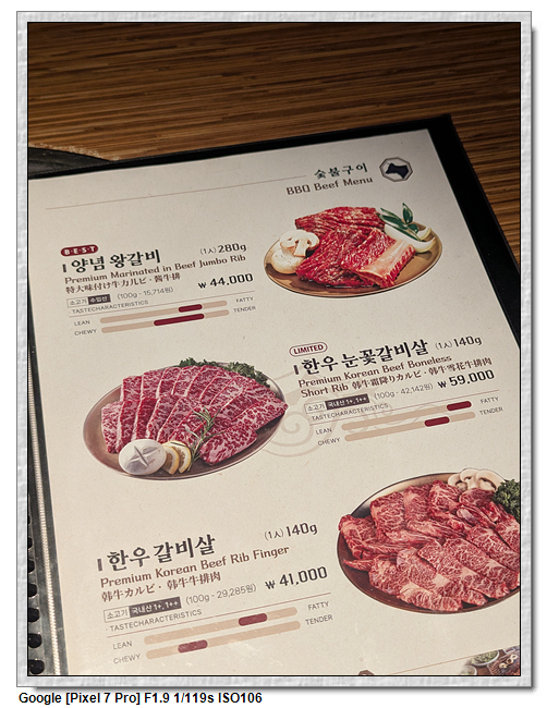 ▼【我們點了韓牛莎朗、韓牛雪花、豬排、大醬湯】