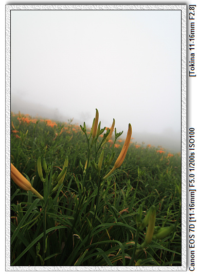 【滿山的金針花,也被霧給包圍了】