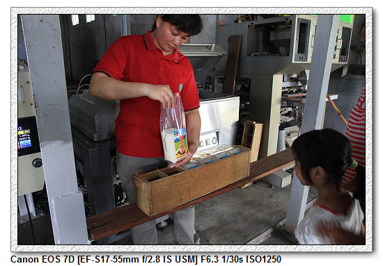 【用腳一踩,米就落入袋哩,剛好一公斤】