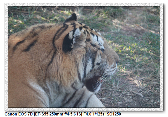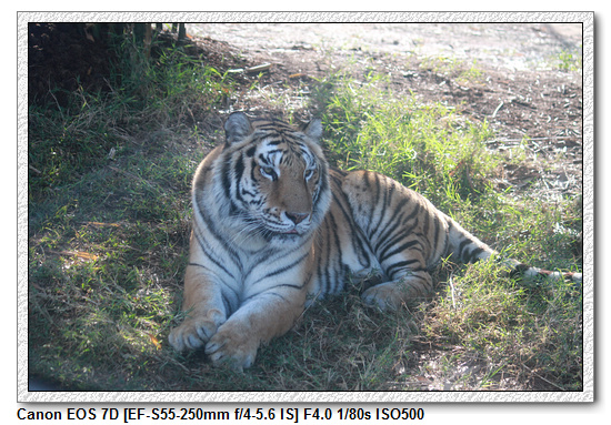 接著是孟加拉虎區,因為我們是最後一梯,吉普車大哥們都圍著我們,等參觀結束就要驅趕。雖然老虎看來懶懶的,但看見吉普車還是會表現出不愉悅的表情,甚至於會咬車,但是咬一下就趕快跑走,畢竟不吃眼前虧,一定會打輸的。