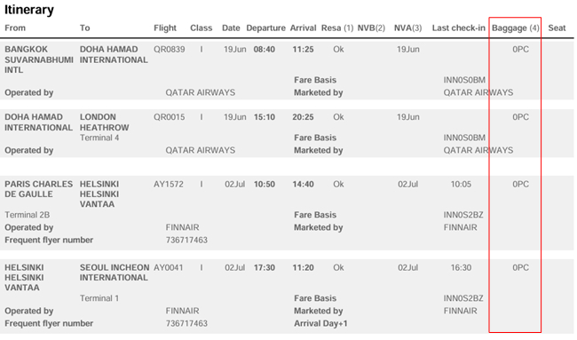 困擾的事情尚未結束,因為芬蘭航空的托運行李是用加購的方式(原機票是不含行李、不含貴賓室,我們買便宜的商務艙機票),所以改簽到卡達航空時是沒有包含托運行李,芬蘭航空會退款原本加購的托運行李,我們要自行購買卡達航空的托運行李。 但登入卡達航空的app後,困惑的事情出現了,在overview顯示我們的extra baggage是空的,但進入manage後查看view allowance,是有一件checked baggage(32kg)。 我們透過FB得到的答案是no baggage allowance,且知道是芬蘭航空改簽後,之後都不理我們了,而mail則無回應。 我們先嘗試購買一件extra baggage,但購買後overview的extra baggage還是空的,但view allowance,多了一件extra baggage,這讓我們更困惑了。小羽媽嘗試用電話方式聯絡,對方也是不太清楚。只好到航空櫃台再處理了,此時我們打算只帶兩個行李箱,避免到時真的要加購托運行李費,但第三個行李箱到倫敦或巴黎時再購買(回程有三個額度),反正我們也想淘汰掉最舊的行李箱。