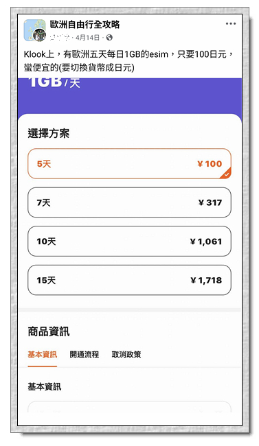 ▼【FB的「歐洲自由行全攻略」esim的消息】