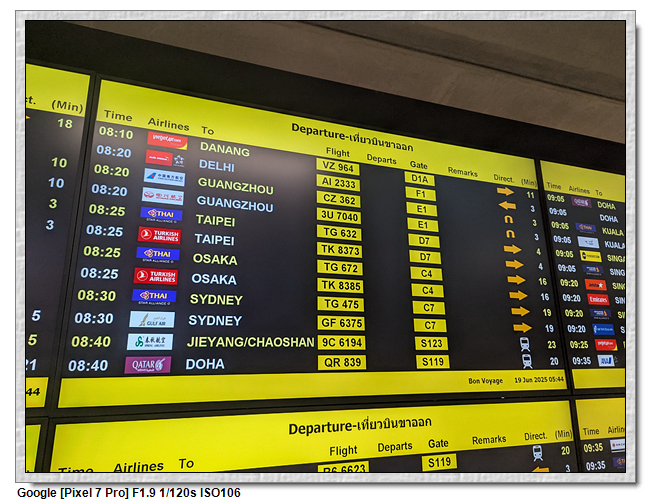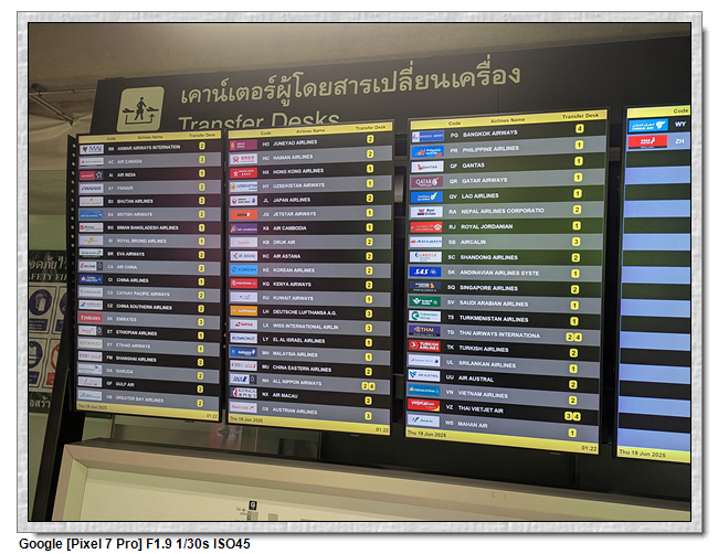 抵達曼谷的素萬那普機場已經是6/19凌晨1點多,下機後慢慢往轉機的方向前進,還好中華航空有幫忙直掛行李,我們才能悠閒的轉機。