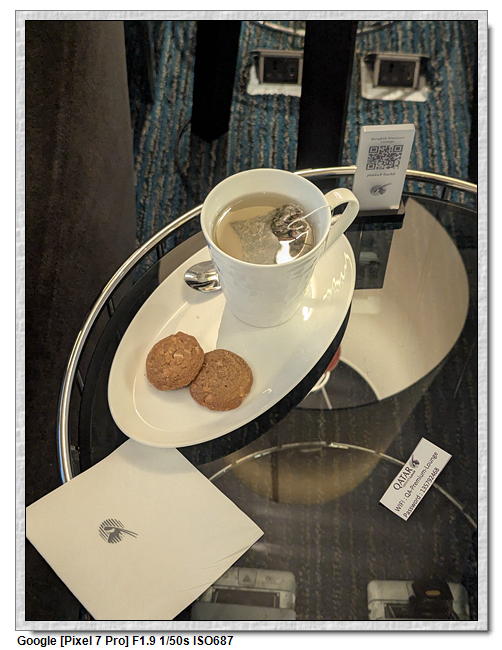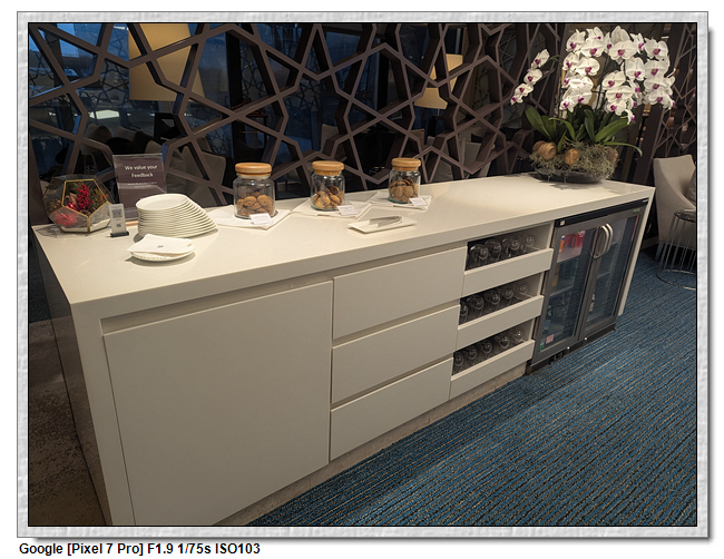 ▼【卡達貴賓室,先幫每個人提供飲料及小餅乾,另有食物區可以免費享用】