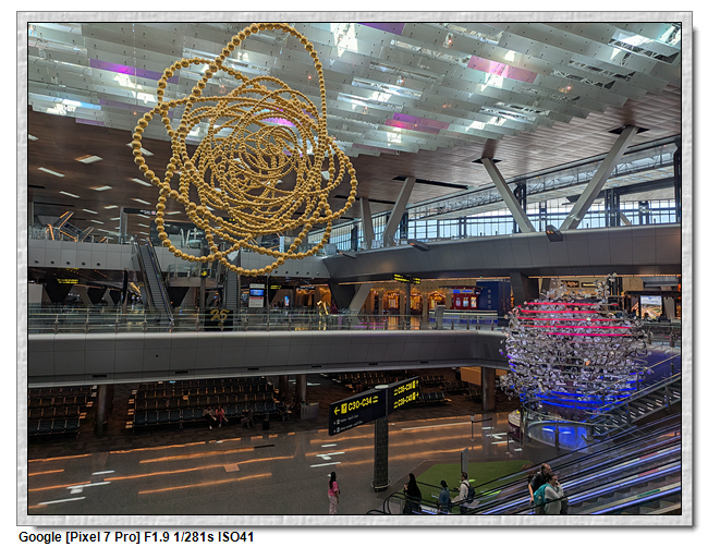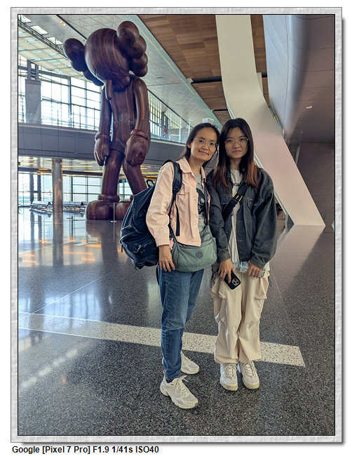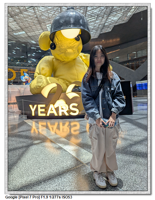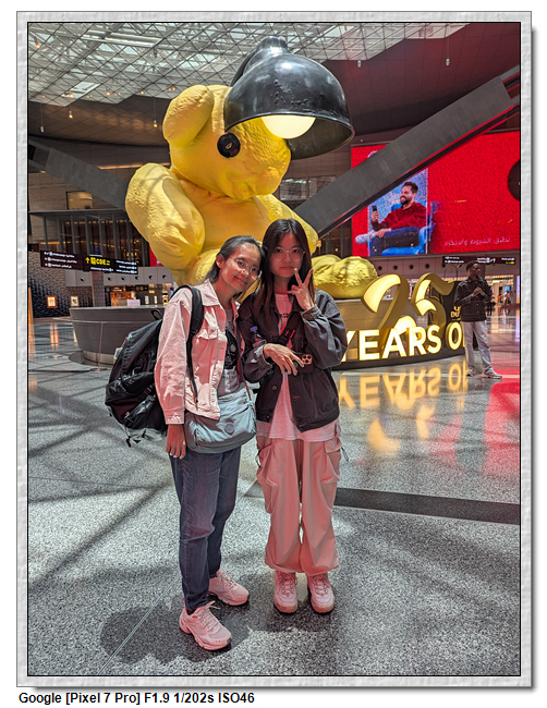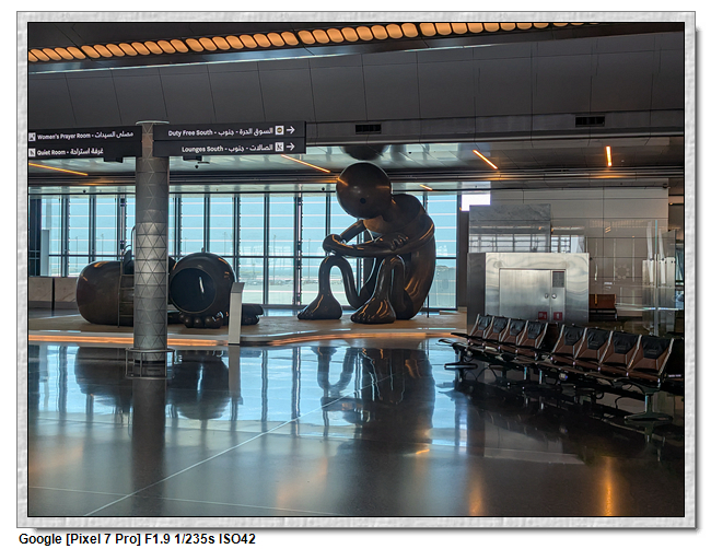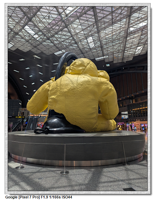 卡達航空在哈馬德國際機場有兩間商務艙貴賓室(Al Mourjan business lounge 及 Al Mourjan business lounge - The Garden)以及一間頭等艙貴賓室(Al Safwa First Lounge),其中 The Garden 是在2023年新開的,難得來到杜哈,當然是去新的貴賓室。 尋找貴賓室,首先要找到「頭卡在檯燈裡的泰迪熊」地標,這隻泰迪熊聽說是在2011年由卡達某一個皇室成員以680萬美元競標價格在紐約的拍賣會買下。