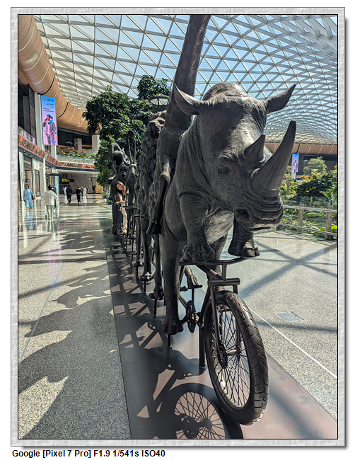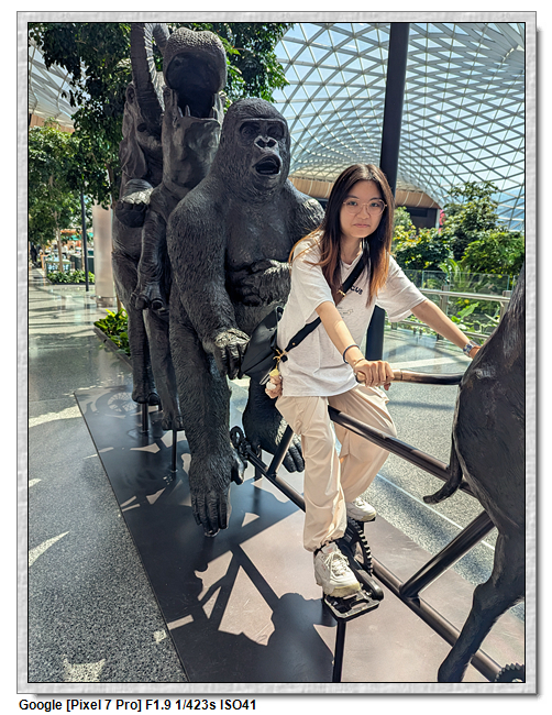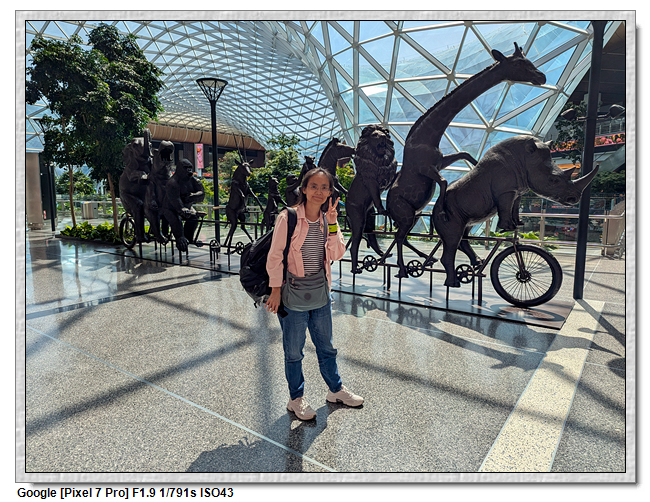 待了兩個多小時,也差不多該前往登機門了,先來花園找找剛剛看到的 動物騎腳踏車 裝置藝術。