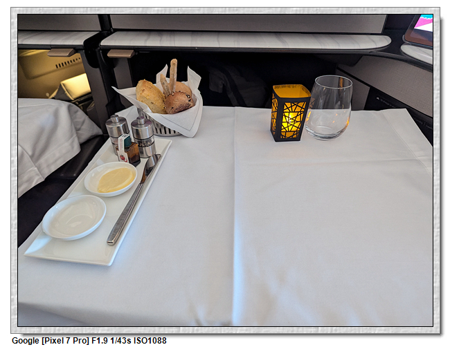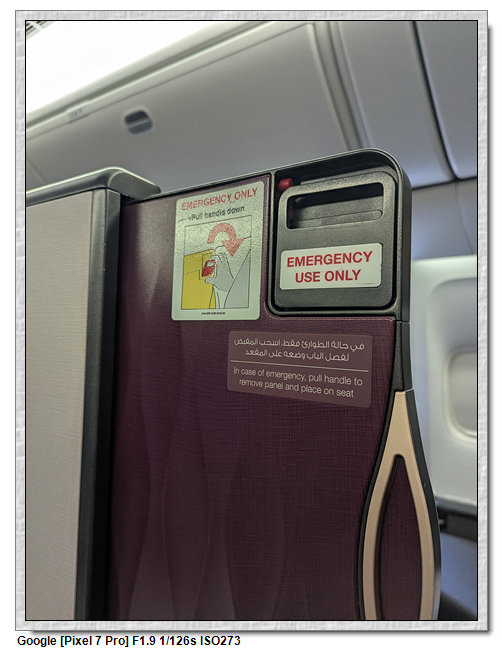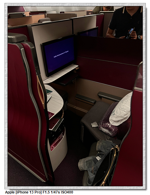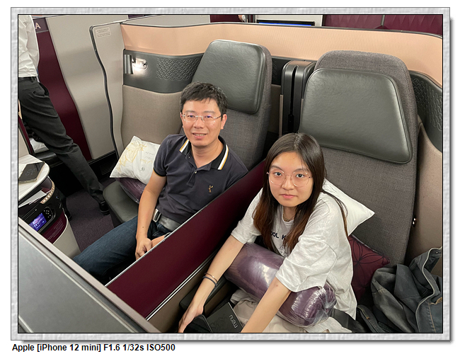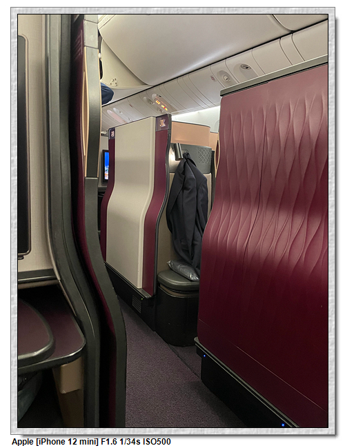 Qsuite商務艙跟一班商務艙比較起來,除了同伴間可以沒有隔閡坐一起聊天之外,最大的優點就是隱私,一般商務艙的一舉一動,其他人都會看到,但Qsuite商務艙一旦關起門來,就是一個小型的個人空間,相當隱私。另外不知道是不是錯覺,Qsuite平躺的長度好像是短了一些些。