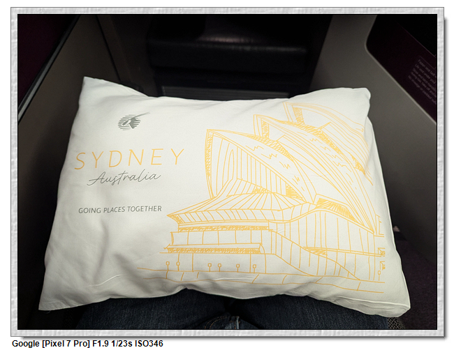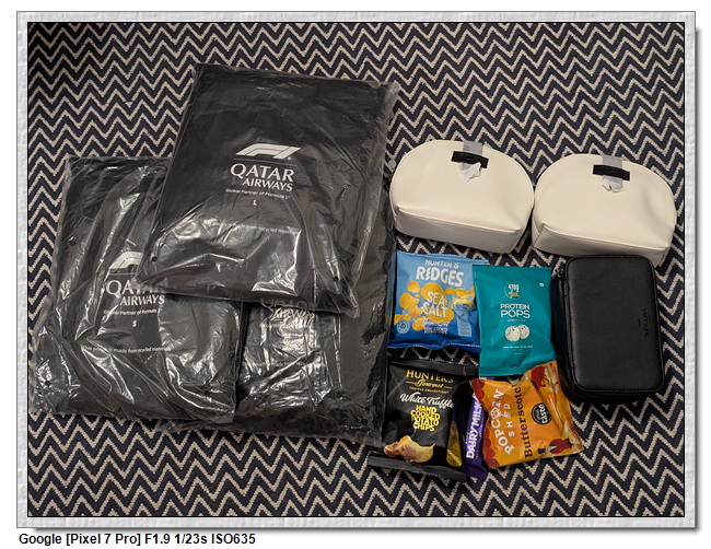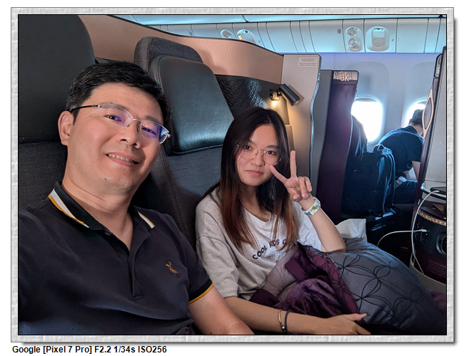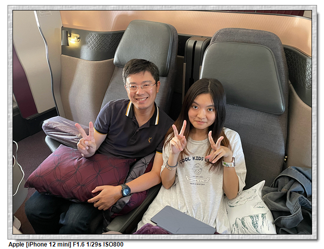 這趟旅程,意外地遇到台籍空服員,不知道為什麼她認出我們是從台灣來的,雖然不是服務商務艙,但一直跑來關心我們,還拿了三個過夜包以及三個睡衣,還有一些小點心給我們。