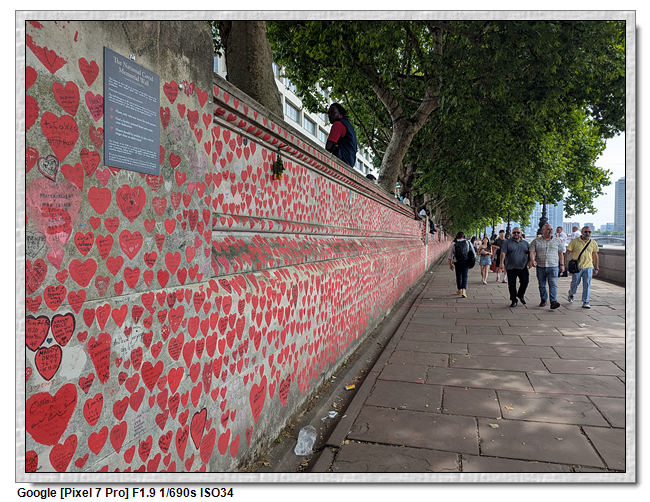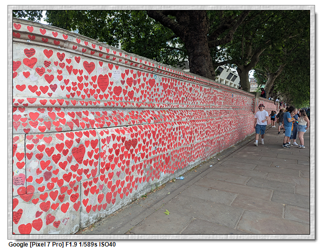 ▼【旁邊有一排長牆,牆上貼滿愛心,這應該是Covid的紀念牆】