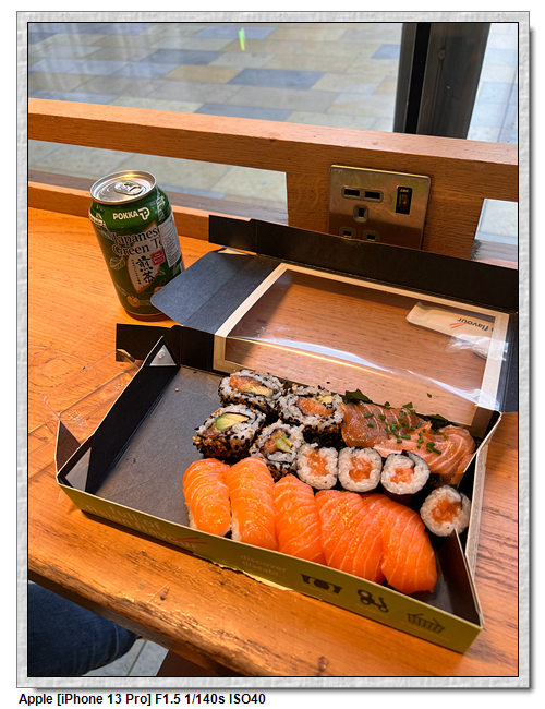 ▼【在車站內的壽司店買點東西吃,這裡內用價格與外帶價格不同(外帶6.45英鎊,內用7.75英鎊)】