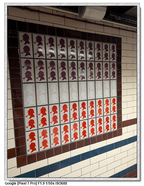 ▼【抵達貝克街,不要急著出站,車站內有福爾摩斯的剪影】