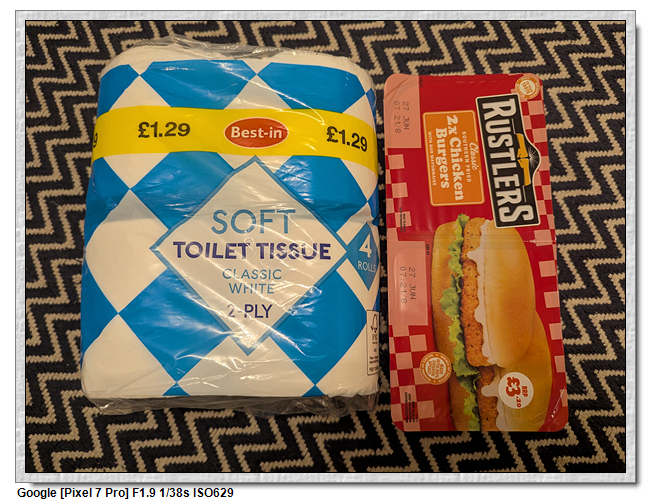 ▼【我們買的衛生紙跟明天的早餐,衛生紙被我們用完了,又找不到備品】