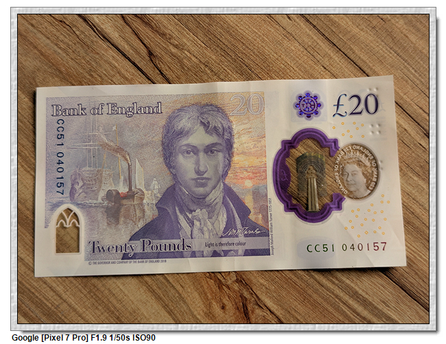 收到現金也不是沒有收穫,我們拿到兩張20元英鎊的新紙鈔,這個紙鈔是在2015年時,英國計劃改版20英鎊紙鈔,邀請人們投票選出一位視覺藝術家的肖像,取代原有的經濟學家亞當斯密(Adam Smith),最後是透納(Joseph Mallord William Turner)獲選,將作為新版20英鎊紙鈔的頭像,並在2020年2月20日正式發行。