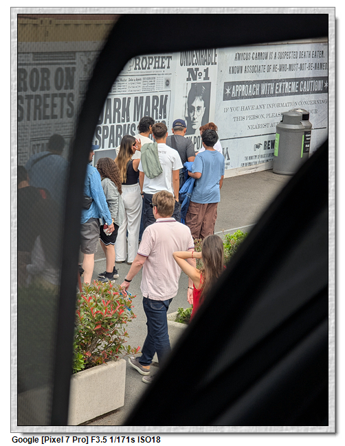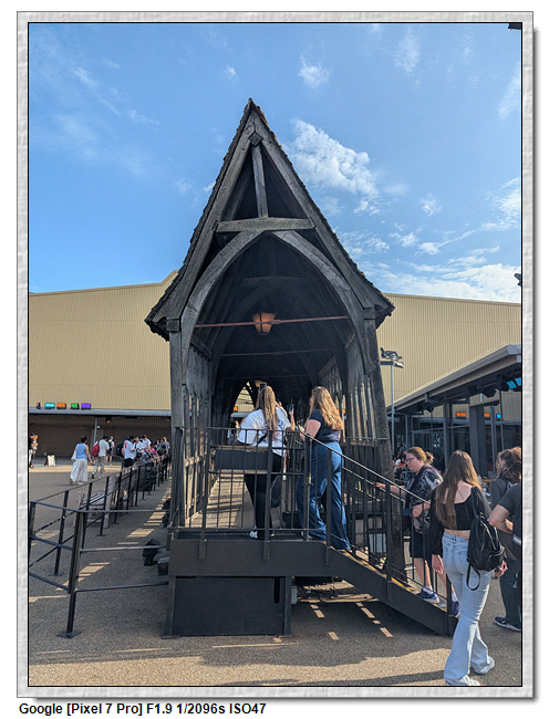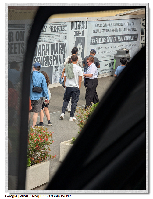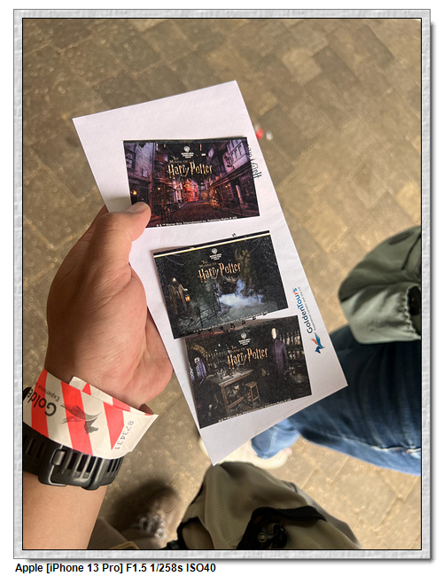 車程大約1小時20分就抵達哈利波特影城,大家陸陸續續地下車領票,我們則是最後下車,有一位穿白制服的工作人員在分票,領票時要報上名字,因為我們是最後一組,所以確認名字後就沒問題了,然後說往前走左轉就是入口。
