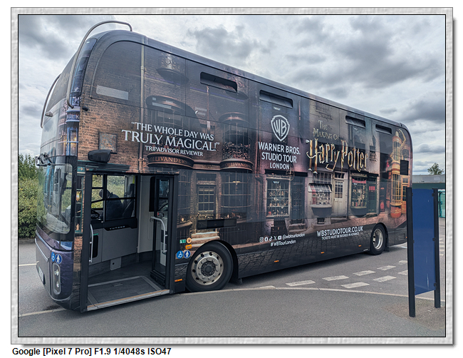 ▼【接駁車是雙層巴士,車身有哈利波特的塗裝】