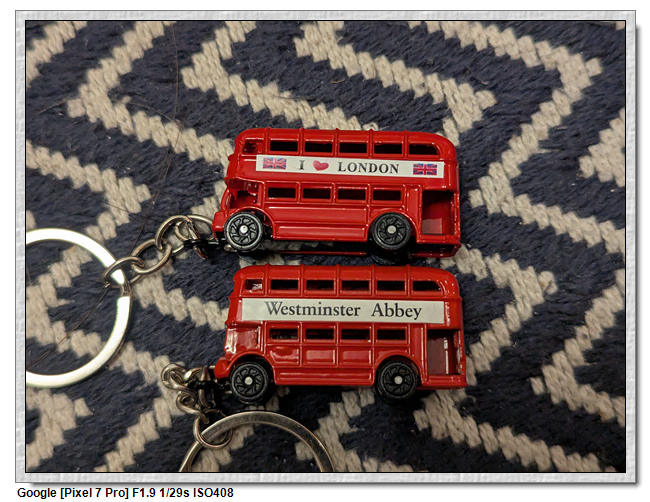 西敏寺購買的復古巴士鑰匙圈(3.95英鎊)與諾丁丘購買的復古巴士鑰匙圈(0.77英鎊),外觀上差異不大,路邊版的的確比較不細緻,車身貼紙貼歪,車頂有明顯的接縫,但就價格上而言,還是買路邊版的就好。
