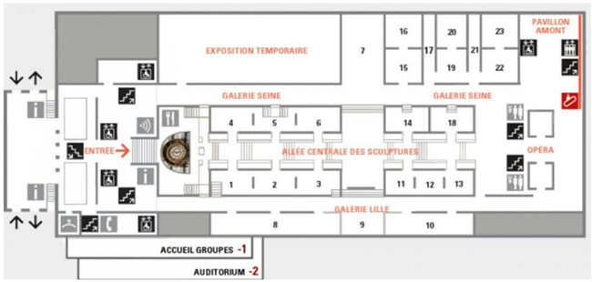 奧賽美術館分為三層,Level 0:博物館入口,有一些馬內跟庫爾貝的作品,也是米勒作品所在區域;Lebel 2:雕塑展區;Level 5:印象派畫作展區,也是奧賽博物館必看區域,梵谷、雷諾瓦、莫內的畫作都在這邊。