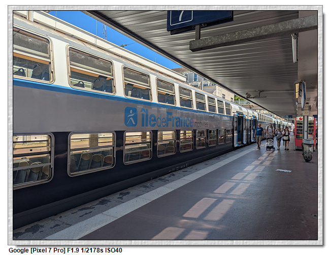 就這樣在用台等了30分鐘,也不見有車來,月台的資訊版也只說某一段會停駛,但不是我們這一段。突然原來列車的司機探頭跟一個人說話,看手勢的意思是可以開車了,然後那個人很貼心地跟每個人說可以坐車(聽不懂法語,但看手勢知道可以搭車), 然後我們就很快地走地下道抵達月台上車,司機也沒等很久,就開車了,整台車沒幾個人,最重要的是,原本沒空調,現在有空調了。所以還是不知道為什麼要趕人下車。