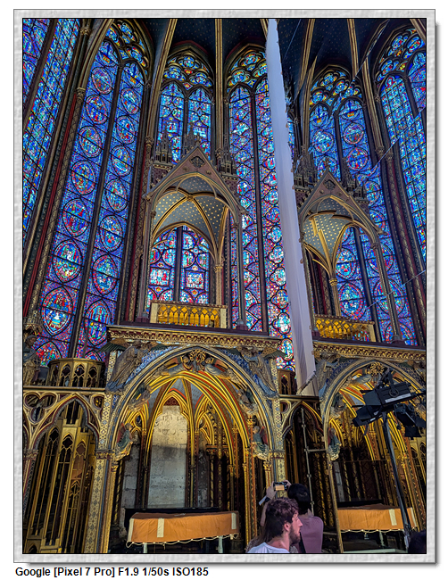 聖徒禮拜堂的的二樓 670 平方公尺的彩色玻璃窗最為珍寶,15 扇巨大彩窗描繪了 1113 幅聖經場景,帶來強烈的光線和驚人的垂直感。