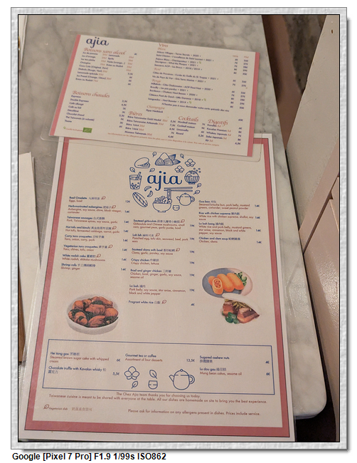 個人覺得口味很道地的台灣味,好吃,如果在巴黎想吃點台灣的食物,這家很推。一碗14歐的滷肉飯,昨天在羅浮宮吃的義大利麵一盤是18歐。跟在台灣魯肉飯與義大利麵相比的價格,就有偏高了,但我相信在巴黎價格是壓不下來的。
