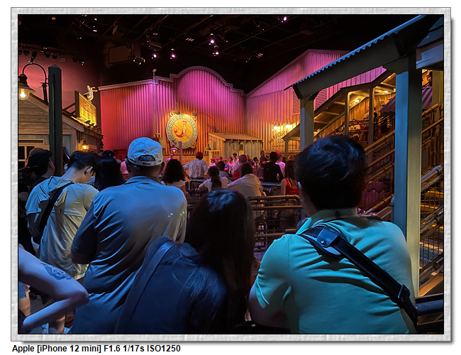 我們這次的策略,是走單人通道,三個人分批玩,這樣的速度快很多。料理鼠王就是坐上一台老鼠車跑來跑去,類似東京的小熊維尼、上海的瘋狂動物城。