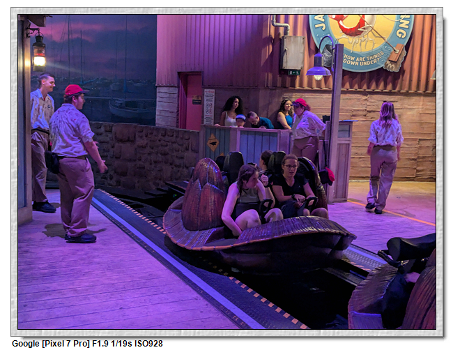 海龜雲霄飛車是稍微不快,但會旋轉的雲霄飛車,旋轉只是稍微旋轉,不是咖啡杯那種一直轉。海龜雲霄飛車我們一樣走單人路線,只是這次等待比較久,因為海龜一次四人,大部分都是兩人或四人同玩,要等待有一個空位的機會就很運氣了,有時前進很快,有時幾乎是不動。
