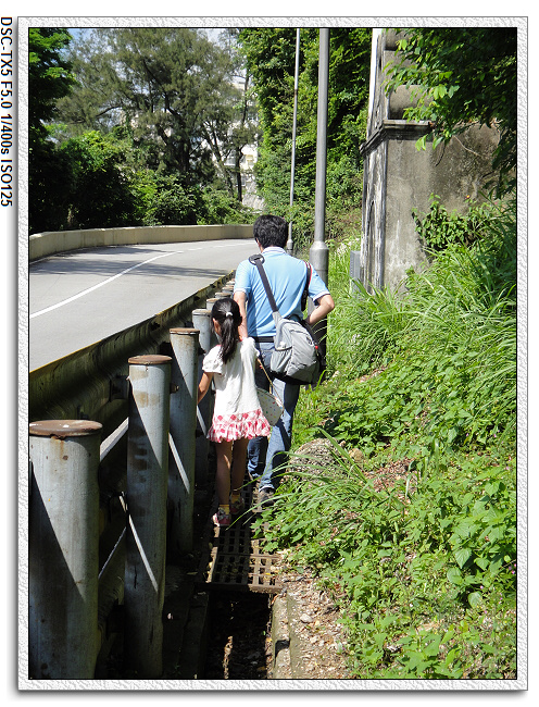 因為沿途都沒有可以遮陽的地方,小羽一路哇哇叫好熱,也一路一直走。沒辦法,小羽爸會罵人。 這段大熱天下迷路,走了半個多小時。
