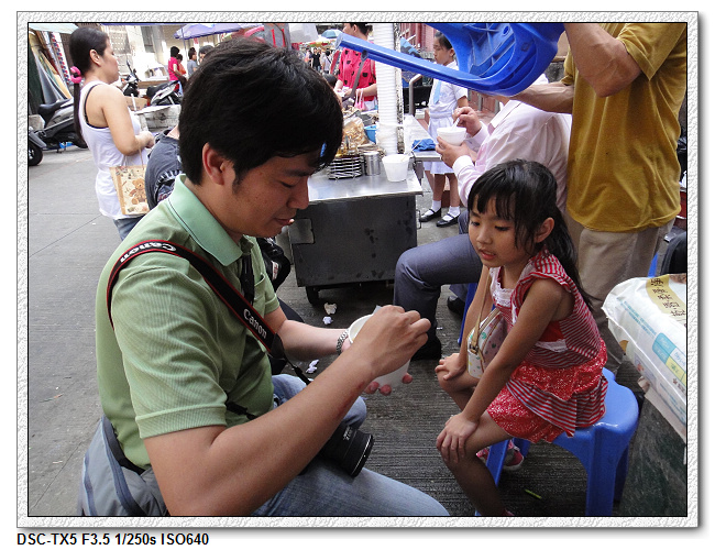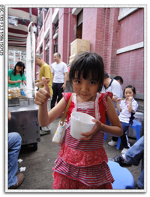 ▼【這是小羽爸第一次吃牛雜粥,很好吃耶;我們是拿塑膠板凳坐著吃】