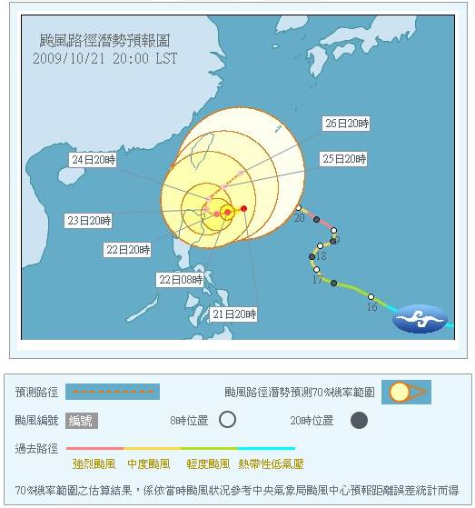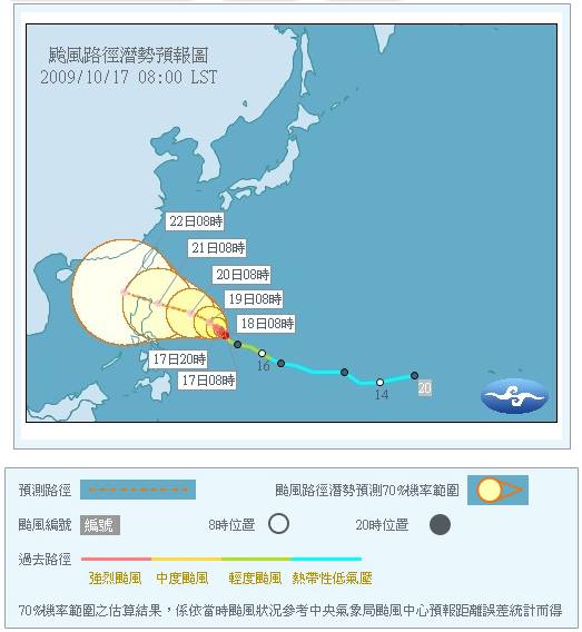 看來上天還是眷顧我的,颱風真的轉向。10/20的颱風預報已有往南的趨勢。哈哈~~~