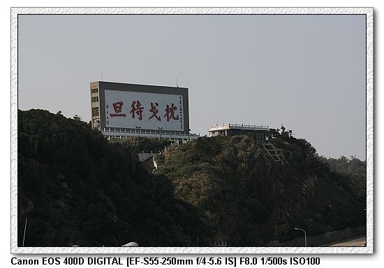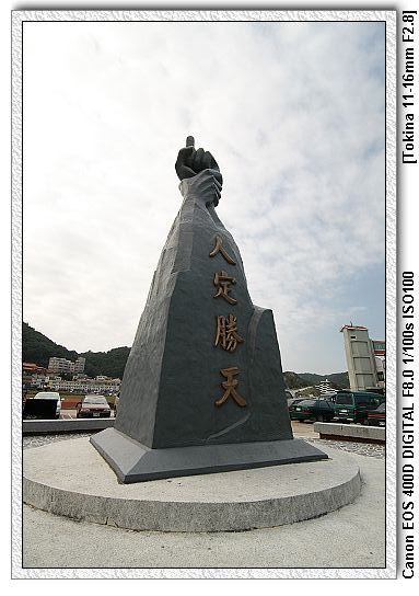 了解船班時間之後,回到福澳港大樓找"一隻手"拍照。整個馬祖充滿許多軍事化的精神標語,相形之下,這隻手的標語就顯的特別。"事在人為、人定勝天",聽起來多麼激勵人啊~~~~