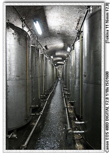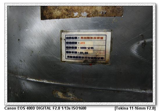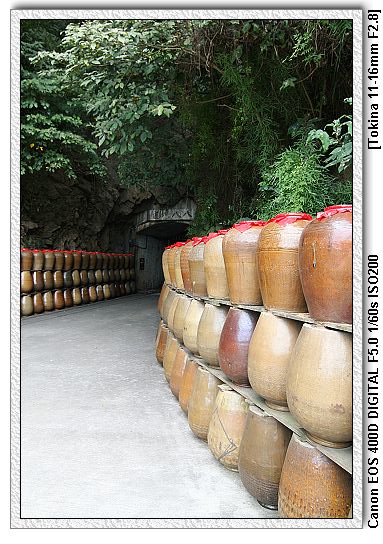 老酒採用酒甕儲存,高梁酒採用鐵桶,不同的存放方式,接待小姐也不清楚為何有這樣的區別(不過好像這是理所當然的,天經地義,就是要這樣存放)。不過終年的恆溫,存放高梁酒的鐵桶摸起來冰冰的,很特別,這裡並沒有任何冷藏裝置。不過有些鐵桶並沒有標示酒種及年份,接待小姐說酒釀師傅會記得。我很質疑,有些酒存放都快十年了,沒標籤很容易就搞混吧~~~