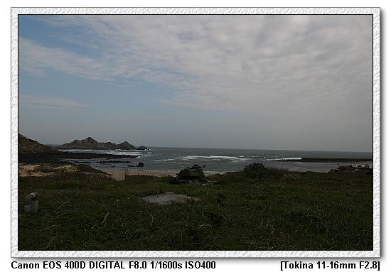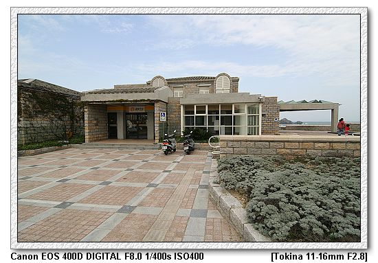 【遊客中心後方停了一輛戰車,砲口對準海岸線】