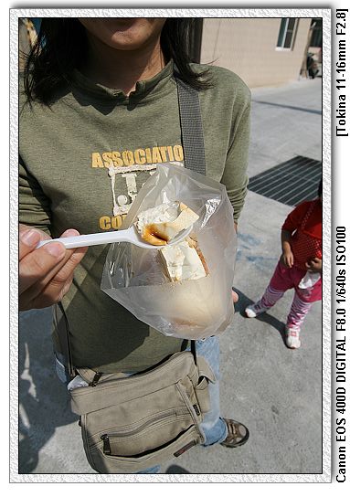 正想說要怎麼吃的時候,阿婆已從隔壁的住家拿了一根塑膠湯匙給我們,真是貼心啊~~~