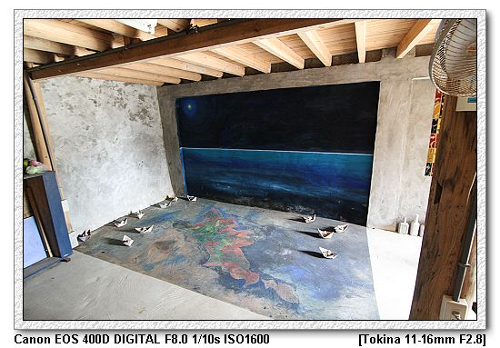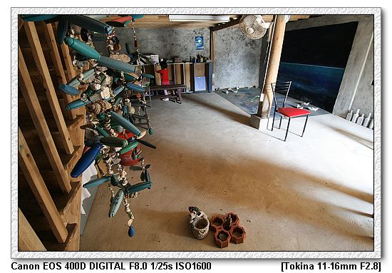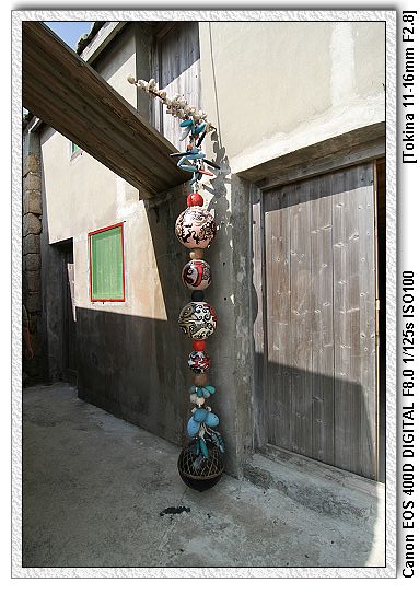 曾有兩位藝術家受邀在這裡住上一段時間(一人住一間),並利用聚落的特色作一些創作。後來離開,這些創作便留在此(我對藝術家不熟,所以並不知道是誰)。