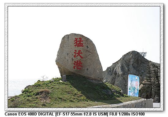 石頭上寫「猛沃港」,這並不是寫錯,而是「沃」是馬祖當地對小港灣的稱呼,是「澳」的簡寫,因此馬祖很多港灣都是用「沃」字。