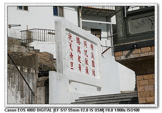 山海一家年久失修,民國六十年夏娜定颱風橫掃以後面目全非,是年九月五日 司令官苟雲森中將陪同行政院長蔣 公經國蒞臨莒光視察,遙見危樓惜云 「我曾在那而住過,位置很好」。余隨待車中當以風災損失情形報告,旋即撥款重建。六十一年暮春材料運達,由工兵五0五營第一連施工,全體官兵奮力以赴晚秋峻工,特記其事用誌不忘。 莒光兼指揮官 張兆鈞