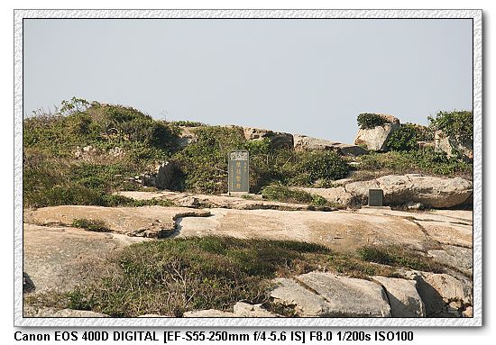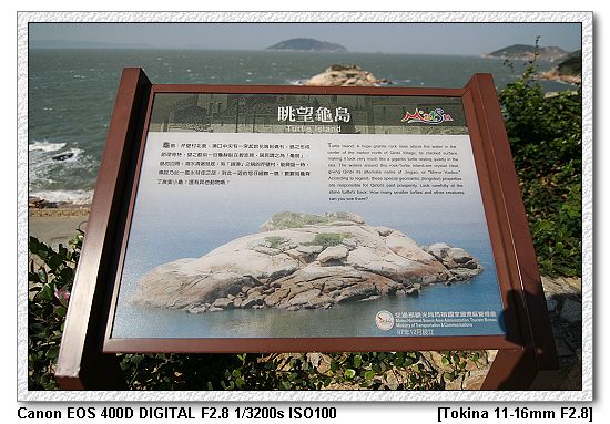 龜島上有個石碑,乍看之下很像是「墓碑」,心想是哪個沒公德心的人家將祖墳放在龜島。後來用望遠鏡頭看,才知道原來是只是個紀念碑。