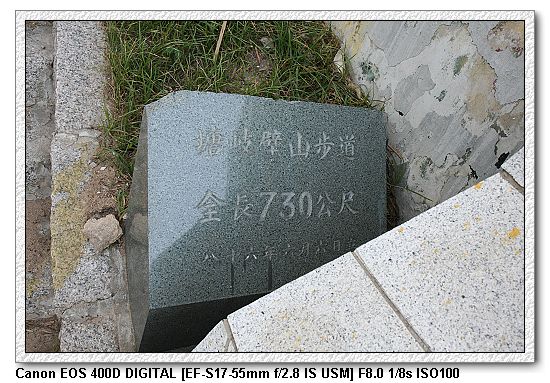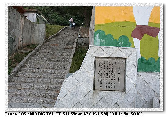 為了找壁山步道,我們騎著車繞了塘岐村好幾回,始終找不到。最後在一家賣紀念品店的老闆以及店內的阿兵哥指引下,終於找到 傳說中的壁山步道。(那兩個阿兵哥一直說爬步道很累,他們每天都要爬步道回營區,很痛恨。勸我們要三思~~~)