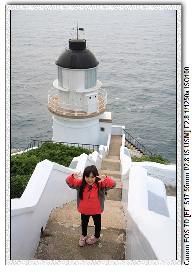 走著走著,突然聽見有人說:「有聲音耶~」,原來是有人從另一頭走,也是不知終點在哪。我們互相問候,原來這個步道的終點是燈塔,難怪扶手都是燈塔。
