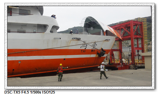 剛到中柱港,就看見台馬輪緩緩的駛來,時間算的剛好。