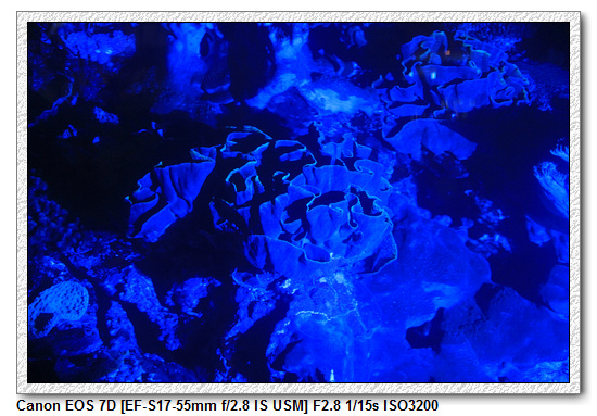 【用藍光照射珊瑚,有些會有螢光喔;夜晚不好拍,就沒多拍了】