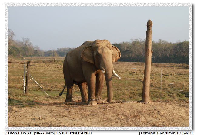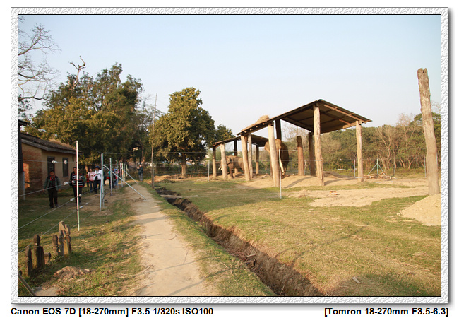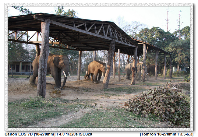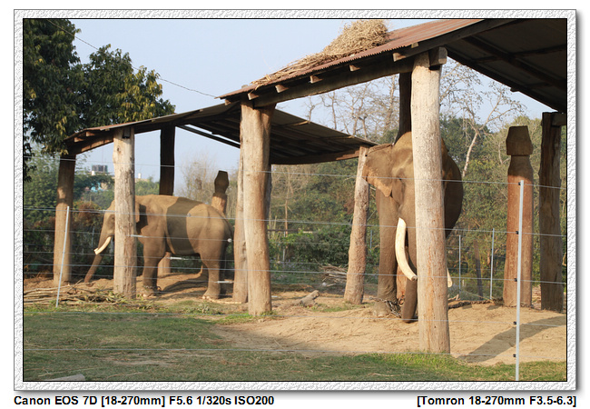 牛車逛街, 到達某個地點之後,就開始步行,一開始是參觀私人的大象園。這個私人的大象園四周都有鐵網圍繞,據說法是避免野生大象進入,怎麼不是防止大象逃跑?