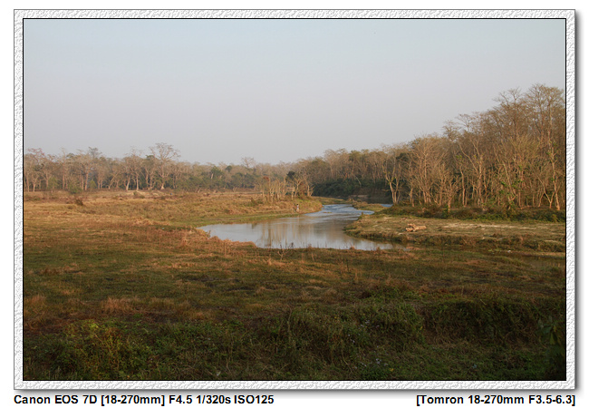 之後沿著拉普蒂河支流河岸步行,沿途尋找野生動物,主要是要找犀牛。