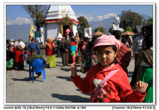 尼泊爾的廟有三種建築,一是圓頂(現在看到的印度廟),另一是方形(待會遊湖小島上的廟),第三是山形,如四眼天神廟和博達塔。 且廟都蓋的矮矮的,目的是要讓人低頭,尊敬神明。