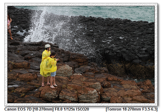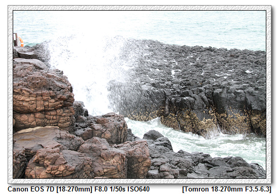 風櫃洞,因為波浪侵蝕造成狹長的海蝕溝,海蝕溝的底端又被侵蝕成海蝕洞,再由海蝕洞順著節理縫隙形成一個通到地面的小孔,每遇南風漲潮時長浪順著海蝕溝灌入,海蝕洞內空氣受擠壓,海水由縫隙噴出,發出呼嘯聲,猶如鼓風爐的聲音一般。