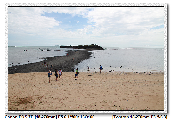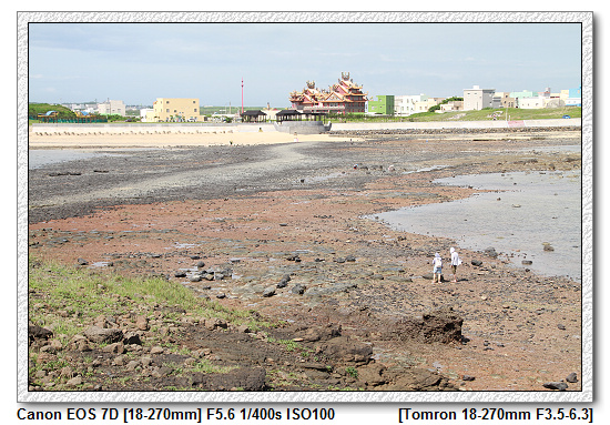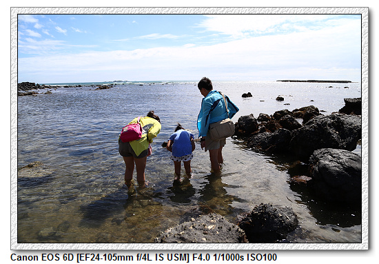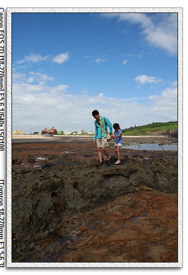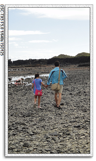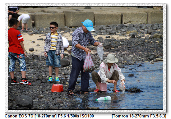 【沙灘途中,有對老夫婦正在抓螺,已經滿滿一杯】