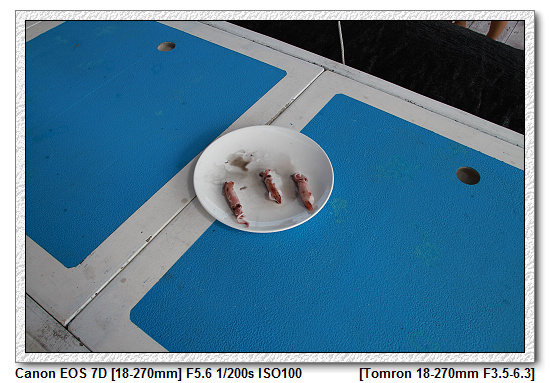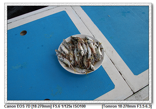【小羽爸放棄,跑去吃捕上來的小管及竹筴魚(太晚去,小管快被吃光)】