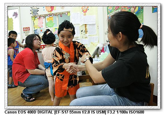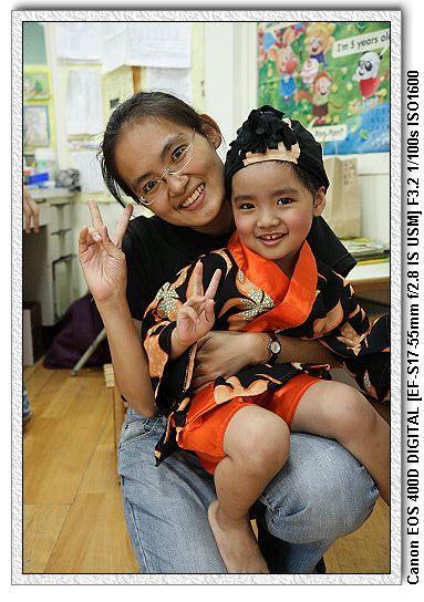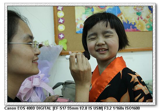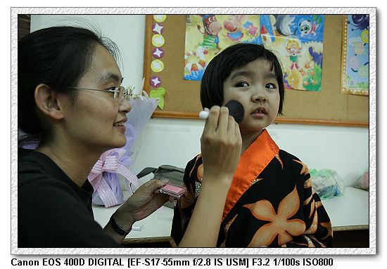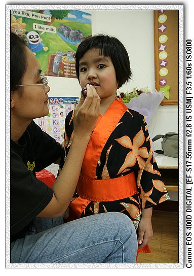 由於表演時需化點小妝,我門還特別跑去屈臣氏買點口紅與腮紅給小羽。小羽媽化的一陣子之後,決定交由Vicky老師幫忙處理。